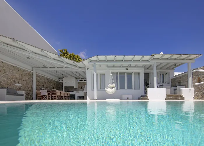 Η Villa In Mykonos With Sea View And Pool προσφέρει παροχές, όπως κοινόχρηστη κουζίνα, καθώς και τραπεζαρία για την εξυπηρέτηση των επισκεπτών. Η κουζίνα επίσης διαθέτει ηλεκτρικό βραστήρα και ψυγείο. Σπεσιαλιτέ μεσογειακής κουζίνας σερβίρονται στο Solymar, που απέχει 19 λεπτά με τα πόδια από αυτή τη βίλα. Το πλησιέστερο αεροδρόμιο είναι Κρατικός Μυκόνου, που βρίσκεται σε απόσταση 5 χλμ. από το κατάλυμα.
